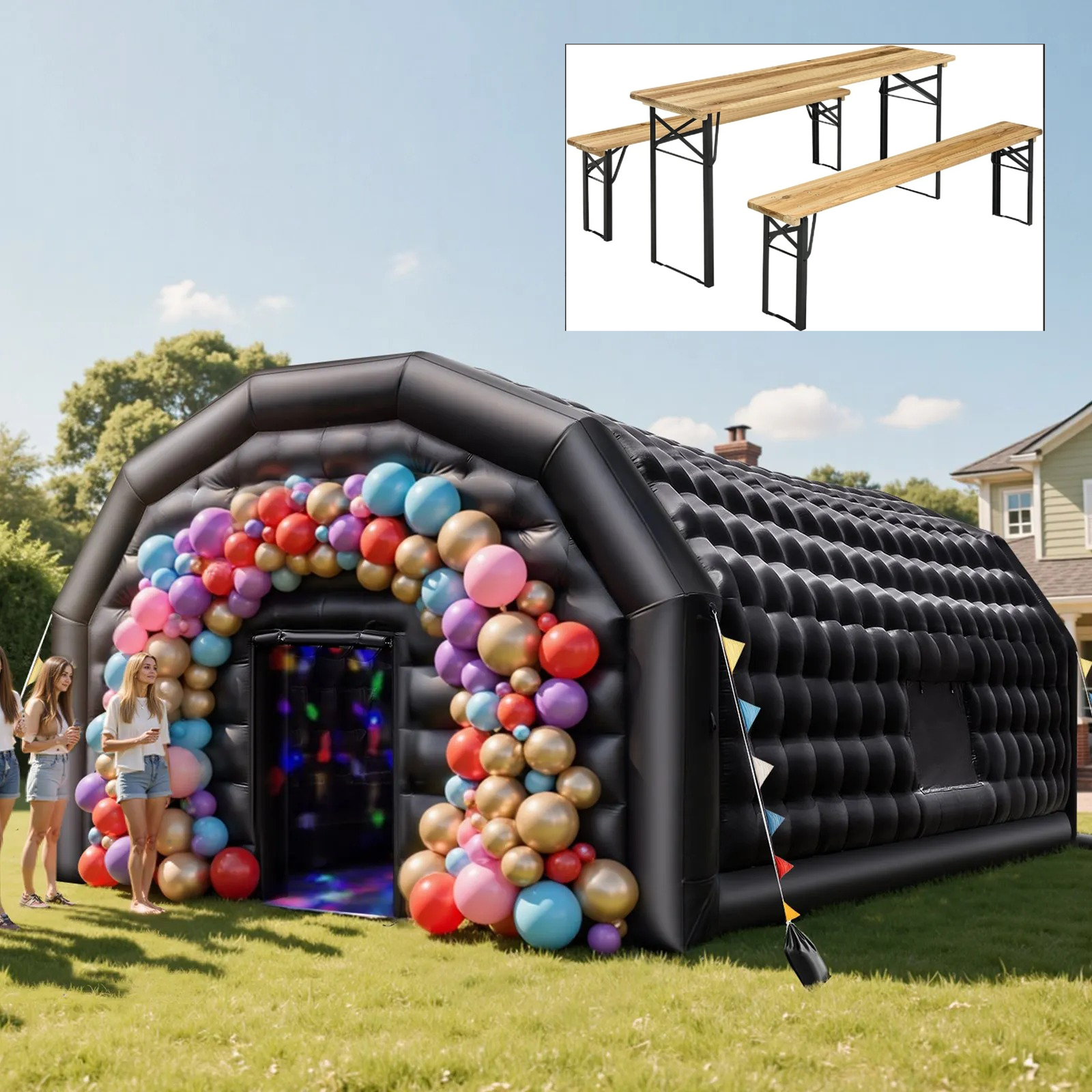Of het nu gaat om een bedrijfsfeest, sportevenement, beursstand of privéfeest: deze opblaasbare tent zorgt voor comfort, stijl en flexibiliteit.